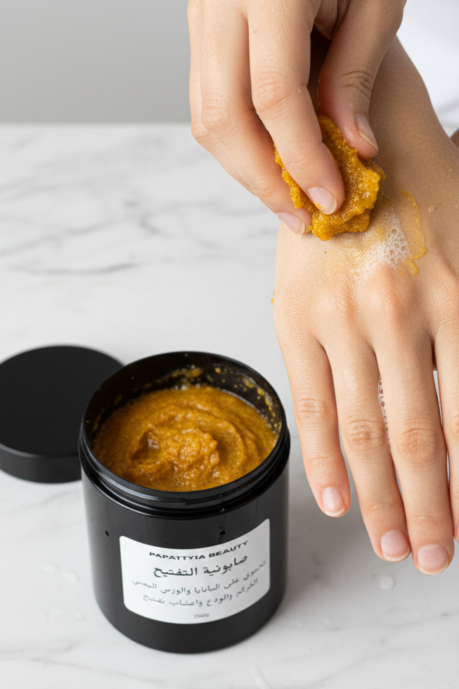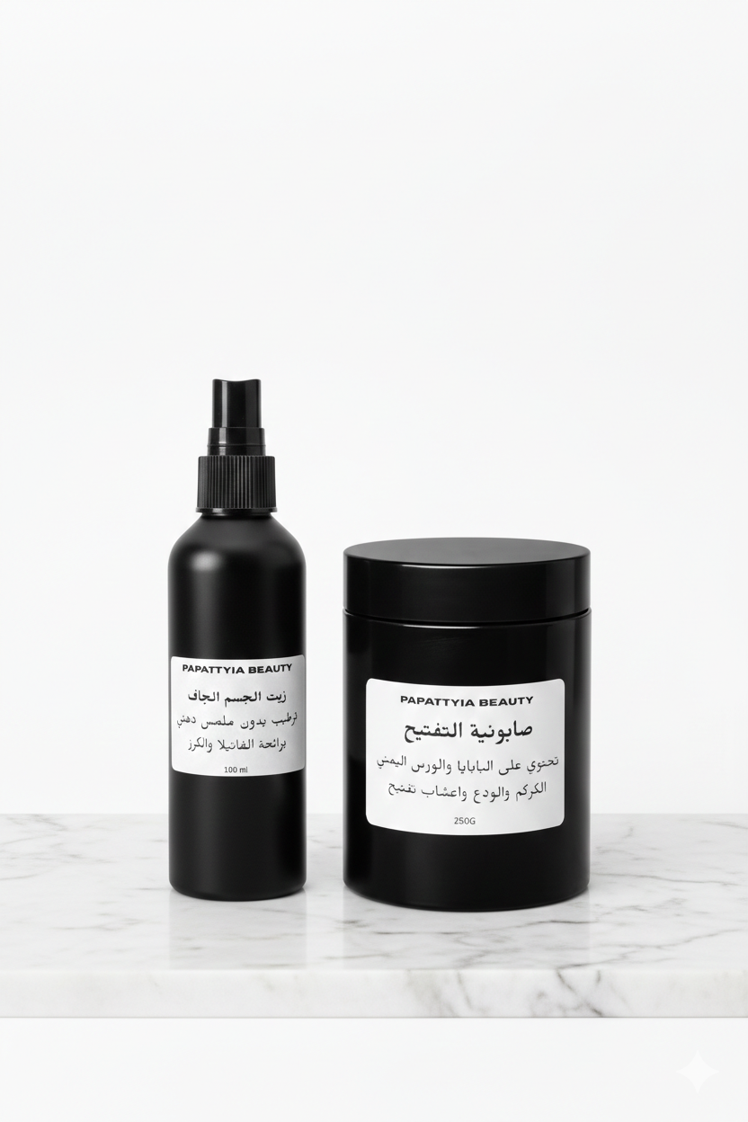 ابدئي بتنظيف بشرتك بصابونية البابايا والورس التي تساعد على تفتيح مظهر البشرة وتوحيد لونها تدريجيًا، وتمنح إشراقة ونقاء مع الاستخدام المنتظم. كما تدعم تحسين ملمس جلد الدجاجة وتقليل مظهر النتوءات بفضل التنظيف العميق والتجديد اللطيف، وتساهم في تنقية المسام. بعد الاستحمام، ضعي زيت الجسم الجاف على البشرة الرطبة ليمنحك ترطيبًا عميقًا ولمسة حريرية طبيعية بدون أي ملمس دهني. تجربة كاملة لبشرة ناعمة، مشرقة، وصحية طوال اليوم